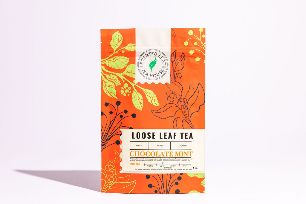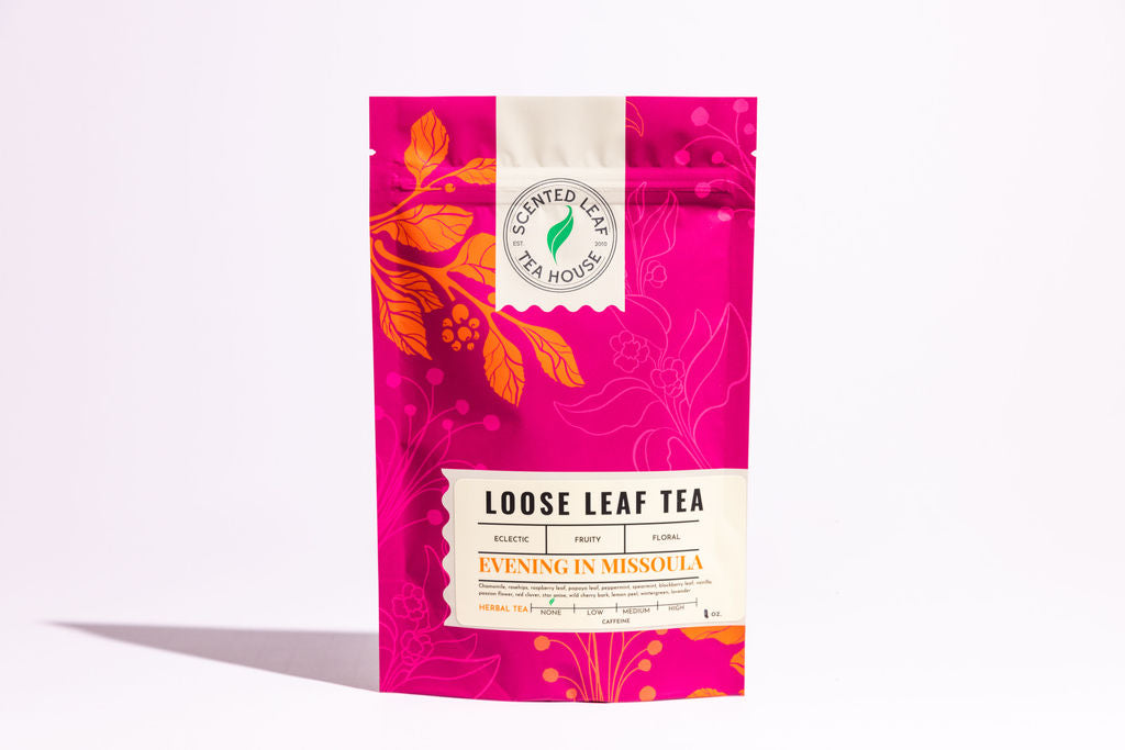 Teas include: Moroccan Mint, Chocolate Mint Rooibos, Peppermint Rooibos, and Evening In Missoula.